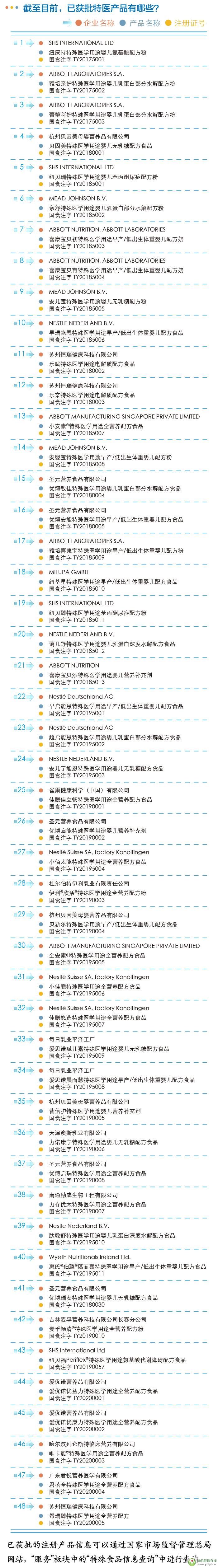 正因為監管嚴格,截至目前,我國獲批上市銷售的特殊醫學用途嬰兒配方食品也只有以下48個。