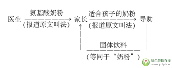 歸責的事情有關監管部門一定會給公眾一個明確的交待,但上面這個圖示是否讓大家聯想到,我們在電視綜藝節目里經常看到的一個游戲——傳話。醫生具體是如何建議家長的,家長是如何轉達給導購的,導購又是如何推薦給家長的,個中細節恐怕很難考證詳盡。
