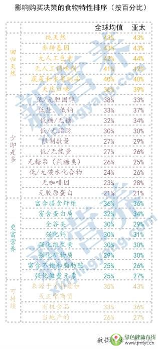 食品健康有很多標準,什么因素會促使主力消費群體決定購買呢?尼爾森曾經列出了27項食品健康屬性,分成回歸天然、少即是多、更富營養、可持續4個種類,以測量購買決策中這些屬性的不同影響。