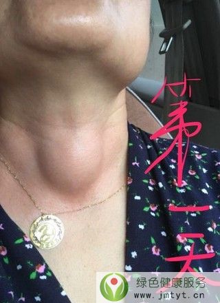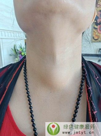 這位美女的甲亢吃綠色動力才不到兩個月,脖子上的包塊就小了大半