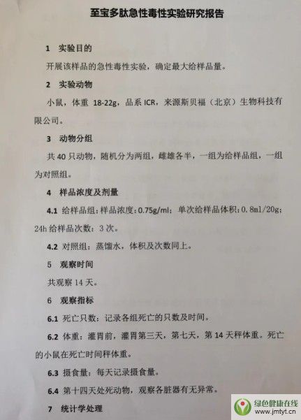 至寶多肽急性毒性實驗[斯貝福(北京)生物科技有限公司]