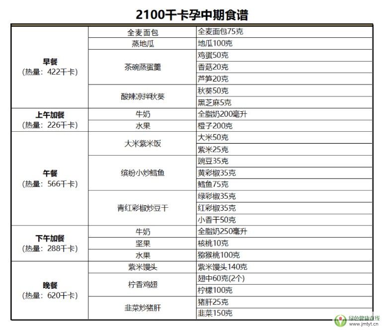 5、 孕中期對蛋白的需求增加,該食譜合理搭配了奶、豆、水產品、畜禽肉,保證了蛋白充足。