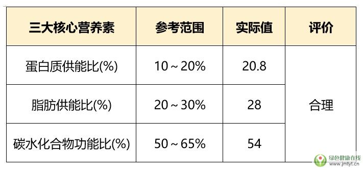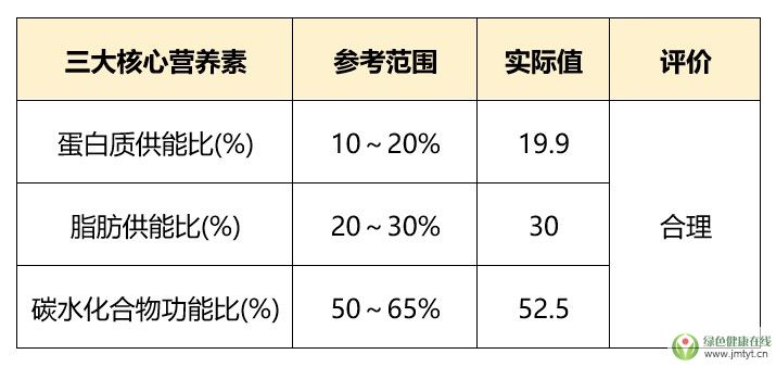 4、三大營養素供能比符合營養推薦,詳見下表。