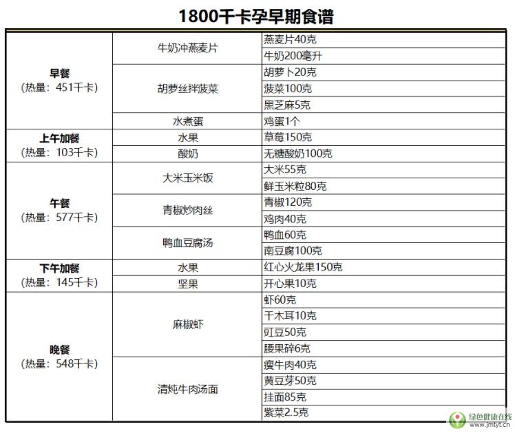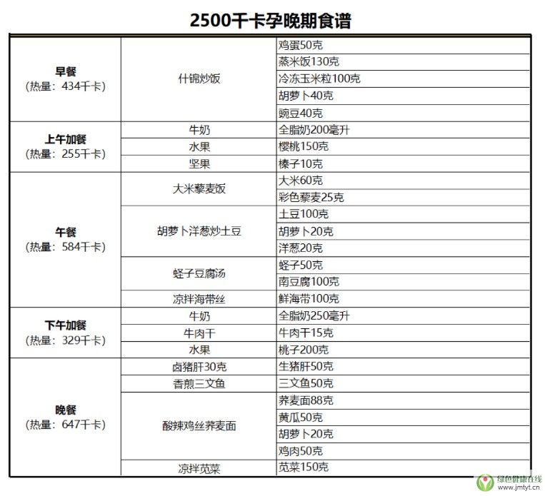 下面根據上面的飲食原則搭配了孕早中晚期的三天食譜,能量根據是中國營養學會對成年輕體力勞動者女性的能量推薦。